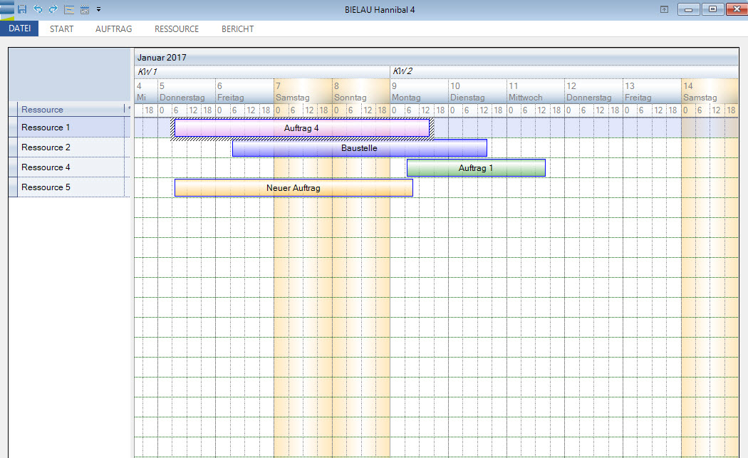Entwerfen Sie mit Hannibal Szenarien! So sieht der Disponent, wie sich die Ressourcenplanung etwa auf die Auslastung auswirkt. Er sieht sozusagen in die Zukunft. Wenn ihm diese nicht gefällt, verwirft er sie und schafft eine neue – so lange, bis sie passt! Die Planungsvorschau zeigt die Auswirkungen eines neuen Auftrages, der in das vorhandene Gefüge integriert werden soll. Hannibal fasst alle notwendigen Schritte dafür automatisch zu einem Ablauf zusammen. Mühselige Denkarbeit für viele einzelne Schritte ist nicht mehr notwendig.