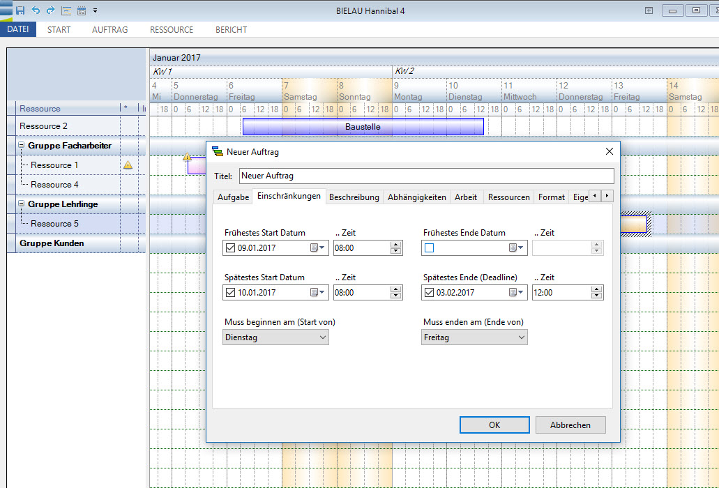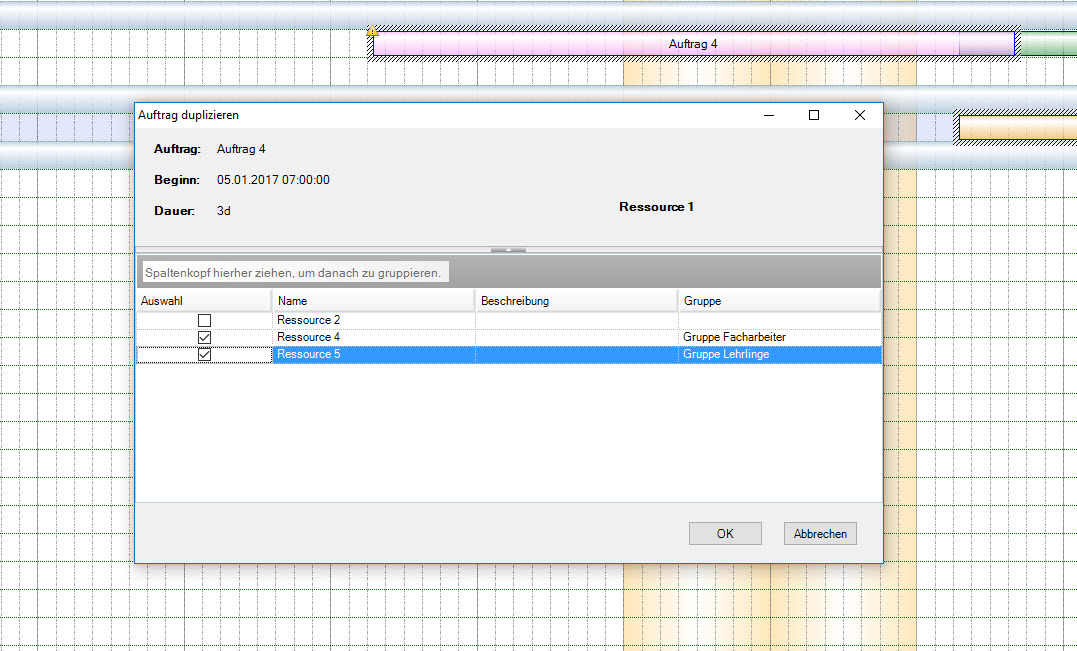 Lücken können automatisiert verplant werden. Ein Auftrag muss nicht einzeln den benötigten Ressourcen zugewiesen werden! Definieren Sie stattdessen ein Team, das diesen Auftrag übernimmt. Gruppen vereinfachen das Verwalten ähnlicher Ressourcen. Bei der Anlage eines neuen Auftrages werden nur jene Ressourcen vorgeschlagen, die im gewählten Zeitraum verfügbar sind und die die notwendigen Skills mitbringen. Diese können dann „in einem Rutsch“ verplant werden.